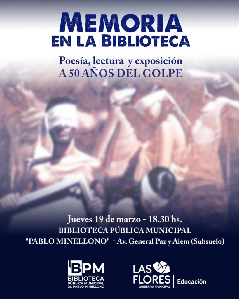 La Secretaría de Educación y Cultura de la Municipalidad de Las Flores invita a participar de la jornada «Memoria en la Biblioteca», que tendrá lugar el jueves 19 de marzo a las 18.30 hs en la Biblioteca Pública Municipal Dr. Pablo Minellono.
